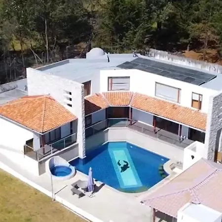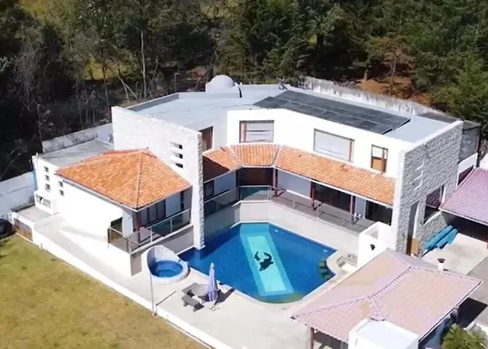 After a day of exploring Quito and its attractions, you can take a refreshing swim in a private pool or enjoy a private garden at Quinta Madeira Valle De Los Chillos villa.
